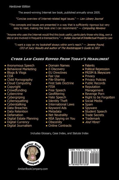 The 10th edition of Issues In Internet Law: Society, Technology, and the Law has been updated for 2016 with the latest cases and trends in Internet Law. The new edition has an expanded glossary, and statute and case indexes, and a full chapter devoted to the NSA's spying on Internet users. Topics include: Privacy: Invasion of Privacy, Public Records, Workplace Privacy, Employer & ISP Monitoring, Data Collection, Data Retention, Data Breaches, the Right to be Forgotten; E-Mail & Chat Room Privacy, Web Site Privacy Policies, Behavioral Marketing, Flash Cookies, Device Fingerprinting, Privacy & Children, Metadata, Border Searches, FISA & the USA PATRIOT Act, the NSA, FISA Court, PRISM, XKeyscore; Free Speech: Defamation, SLAPPs, Gripe Sites, Revenge Porn Sites, Mugshot Sites, Blogs & Vlogs, Obscenity & Pornography, Harassment & Hate Speech, Prior Restraint, Repression, Student Speech, CDA, Anonymous Speech, Commercial Speech, Expressive Conduct; Social Media: Dangers, Misuse, Ownership, Coerced Access, the Courts; Cybercrimes: Spam, Phishing, Identity Theft, Spyware & Malware, Cyberstalking, Cyberbullying, Computer Trespass, Wardriving, Virtual Crime; Intellectual Property: Copyright, Trademark, Patent, Trade Secrets, Creative Commons, Linking, Framing, File-Sharing, Fair Use, Public Domain, Work-Made-For-Hire, DMCA, VARA, Domain Name Disputes, Keyword Advertising, America Invents Act; Business & the Internet: Internet Taxation, Internet Interstate Commerce, Web Contracts, e-Discovery, Corporate Securities, Crowdfunding, Reg A, Reg D; Also: Cloud Computing; Digital Currency; Right of Publicity; Web Accessibility; Net Neutrality; Online Reputation Management; Social Media Monitoring; Podcasts; Geofiltering; Digital Journalism; Hyper Local Web Sites, Digital Estate Planning; Sexting; E-Books and many more subjects. Concisely written and covering a broad range of topics, this is the most current book of its kind! Reviews: * "Concise overview of Internet-related legal issues." (Law Library Journal) * "Although it deals with the complex legal issues surrounding the Internet, it is written in layman's terms and illustrated with 'ripped from the headlines' court cases." (Amazon) * "The concepts and issues are presented in a way that is sufficiently rigorous but very easy to read, making the book one I can recommend." (Computing Reviews) * "A valuable resource, well-researched and well presented." * "I want a copy on my bookshelf always within arm's reach." * "The anecdotal nature made it easy to understand the underlying legal concepts." * "It is imperative that schools adopt this book in a way which would help young students gain knowledge about the various issues involving the Internet." (Indian Journal of Intellectual Property Law) * "Issues in Internet Law: Society, Technology, and the Law will be a welcome addition in both academic and public law libraries... It should be acquired by libraries for its concise overview of Internet-related legal issues." (Law Library Journal)