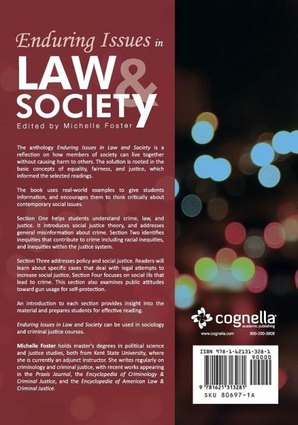 The anthology Enduring Issues in Law and Society is a reflection on how members of society can live together without causing harm to others. The solution is rooted in the basic concepts of equality, fairness, and justice, which informed the selected readings. The book uses real-world examples to give students information, and encourages them to think critically about contemporary social issues. Section One helps students understand crime, law, and justice. It introduces social justice theory, and addresses general misinformation about crime. Section Two identifies inequities that contribute to crime including racial inequities, and inequities within the justice system. Section Three addresses policy and social justice. Readers will learn about specific cases that deal with legal attempts to increase social justice. Section Four focuses on social ills that lead to crime. This section also examines public attitudes toward gun usage for self-protection. An introduction to each section provides insight into the material and prepares students for effective reading. Enduring Issues in Law and Society can be used in sociology and criminal justice courses.