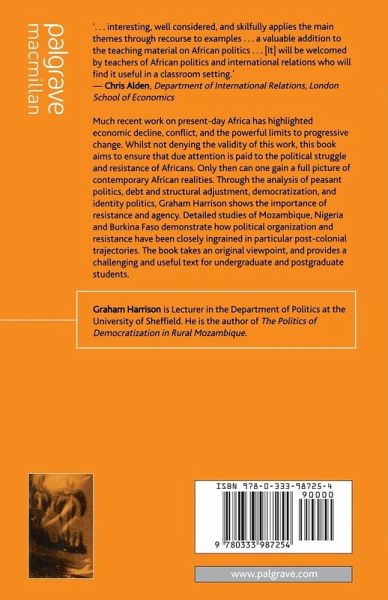 Graham Harrison investigates contemporary African politics by privileging the dynamics of political struggle and resistance. Through the analysis of peasant politics, debt and structural adjustment, democratization and identity politics, the author shows the importance of resistance and agency. Detailed studies of Mozambique, Nigeria, and Burkina Faso demonstrate how political organization and resistance have been closely ingrained in particular post-colonial trajectories. An original and refreshing approach to the study of African politics, this will be a useful textbook for upper level undergraduates and postgraduate students.