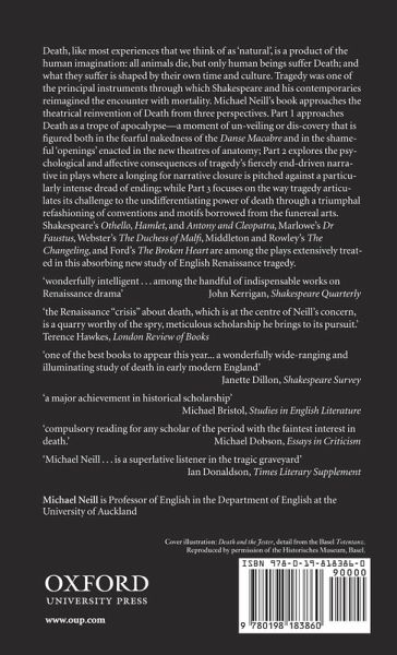 Death, like most experiences that we think of as 'natural', is a product of the human imagination: all animals die, but only human beings suffer Death; and what they suffer is shaped by their own time and culture. Tragedy was one of the principal instruments through which the culture of early modern England imagined the encounter with mortality. The essays in this book approach the theatrical reinvention of Death from three perspectives. Those in Part 1 explore Death as a trope of apocalypse - a moment of un-veiling or dis-covery that is figured both in the fearful nakedness of the Danse Macabre and in the shameful 'openings' enacted in the new theatres of anatomy. Separate chapters explore the apocalyptic design of two of the period's most powerful tragedies - Shakespeare's Othello, and Middleton and Rowley's The Changeling. In Part 2, Neill explores the psychological and affective consequences of tragedy's fiercely end-driven narrative in a number of plays where a longing for narrative closure is pitched against a particularly intense dread of ending. The imposition of an end is often figured as an act of writerly violence, committed by the author or his dramatic surrogate. Extensive attention is paid to Hamlet as an extreme example of the structural consequences of such anxiety. The function of revenge tragedy as a response to the radical displacement of the dead by the Protestant abolition of purgatory - one of the most painful aspects of the early modern re-imagining of death - is also illustrated with particular clarity. Finally, Part 3 focuses on the way tragedy articulates its challenge to the undifferentiating power of death through conventions and motifs borrowed from the funereal arts. It offers detailed analyses of three plays - Shakespeare's Anthony and Cleopatra, Webster's The Duchess of Malfi, and Ford's The Broken Heart. Here, funeral is rewritten as triumph, and death becomes the chosen instrument of an heroic self-fashioning designed to dress the arbitrary abruption of mortal ending in a powerful aesthetic of closure.
