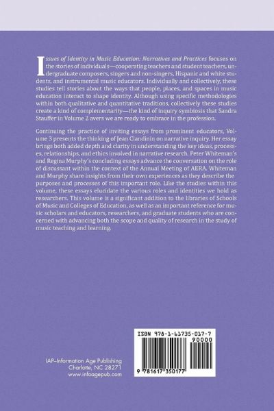A volume in Advances in Music Education Research Series Editors Linda K. Thompson, Lee University and Mark Robin Campbell, SUNY at Potsdam Editorial Board: William Bauer, Case Western Reserve University. Susan Wharton Conkling, Eastman School of Music, University of Rochester. Colleen Conway, University of Michigan. Lisa R. Hunter, The State University of New York College at Buffalo. Joshua A. Russell, The Hartt School, University of Hartford. Peter Whiteman, Institute of Early Childhood, Macquarie University. Issues of Identity in Music Education: Narratives and Practices focuses on the stories of individuals-cooperating teachers and student teachers, undergraduate composers, singers and non-singers, Hispanic and white students, and instrumental music educators. Individually and collectively, these studies tell stories about the ways that people, places, and spaces in music education interact to shape identity. Although using specific methodologies within both qualitative and quantitative traditions, collectively these studies create a kind of complementarity-the kind of inquiry symbiosis that Sandra Stauffer in Volume 2 avers we are ready to embrace in the profession. Continuing the practice of inviting essays from prominent educators, Volume 3 presents the thinking of Jean Clandinin on narrative inquiry. Her essay brings both added depth and clarity in understanding the key ideas, processes, relationships, and ethics involved in narrative research. Peter Whiteman's and Regina Murphy's concluding essays advance the conversation on the role of discussant within the context of the Annual Meeting of AERA. Whiteman and Murphy share insights from their own experiences as they describe the purposes and processes of this important role. Like the studies within this volume, these essays elucidate the various roles and identities we hold as researchers. This volume is a significant addition to the libraries of Schools of Music and Colleges of Education, as well as an important reference for music scholars and educators, researchers, and graduate students who are concerned with advancing both the scope and quality of research in the study of music teaching and learning.