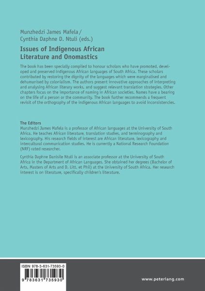 The book has been specially compiled to honour scholars who have promoted, developed and preserved indigenous African languages of South Africa. These scholars contributed by restoring the dignity of the languages which were marginalised and dehumanised by colonialism. The authors present innovative approaches of interpreting and analysing African literary works, and suggest relevant translation strategies. Other chapters focus on the importance of naming in African societies. Names have a bearing on the life of a person or the community. The book further recommends a frequent revisit of the orthography of the indigenous African languages to avoid inconsistencies.