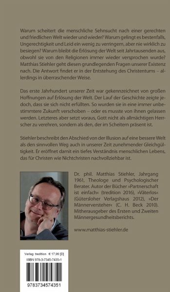 Warum scheitert die menschliche Sehnsucht nach einer gerechten und friedlichen Welt wieder und wieder? Warum gelingt es bestenfalls, Ungerechtigkeit und Leid ein wenig zu verringern, aber nie wirklich zu besiegen? Warum bleibt die Erlösung der Welt seit Jahrtausenden aus, obwohl sie von den Religionen immer wieder versprochen wurde? Matthias Stiehler geht diesen grundlegenden Fragen unserer Existenz nach. Die Antwort findet er in der Entstehung des Christentums - allerdings in überraschender Weise.Das erste Jahrhundert unserer Zeit war gekennzeichnet von großen Hoffnungen auf Erlösung der Welt. Der Lauf der Geschichte zeigte jedoch, dass sie sich nicht erfüllten. So wurden sie in eine immer unbestimmtere Zukunft verschoben - oder es musste von ihnen gelassen werden. Letzteres aber setzt voraus, Gott nicht als allmächtigen Herrscher zu verehren, sondern als den, der im Scheitern präsent ist.Stiehler beschreibt den Abschied von der Illusion auf eine bessere Welt als den sinnvollen Weg auch in unserer Zeit zunehmender Gleichgültigkeit. Er eröffnet damit ein tiefes Verständnis menschlichen Lebens, das für Christen wie Nichtchristen nachvollziehbar ist.www.ist-gott-noch-zu-retten.de