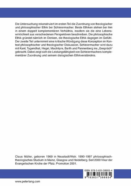 Die Untersuchung rekonstruiert im ersten Teil die Zuordnung von theologischer und philosophischer Ethik bei Schleiermacher. Beide Ethiken stehen bei ihm in einem doppelt komplementären Verhältnis, insofern sie die eine Lebenswirklichkeit aus verschiedenen Perspektiven beschreiben. Die philosophische Ethik gründet nämlich im Denken, die theologische Ethik dagegen im Gefühl.