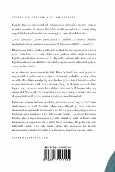Életünk döntések sorozatából áll. Folyamatosan döntéseket hozunk, jókat és rosszakat egyaránt, és minden döntésünk következményekkel jár. Lesújtó dolog megkérd¿jelezni a döntéseinket és azon rágódni, vajon jól cselekszünk-e. ¿Mivel Krisztussal együtt feltámadtatok a halálból, a mennyei dolgokra törekedjetek, hiszen Krisztus is a mennyben ül, Isten jobb oldalán!" - Kolossé 3:1 Döntéseinket két kategóriába sorolhatjuk: amelyek Istenhez tartoznak, és amelyek nem. Habár Isten terve mellé elkötelez¿dni gyakran nehéz, mégis ez termi a legjobb gyümölcsöket hosszútávon. A világ mellett dönteni talán könnyebb és a legjobb módnak t¿nik a fájdalom elkerülésére, azonban ezek a választások gyakran a pusztulásba visznek. Istent választani tanulmányunk két férfi, Jákób és József életét veszi górcs¿ alá; megismerjük a családjukat és azokat a döntéseket, melyekkel szembe kellett nézniük. Mind Jákób, mind pedig József konkrét ígéretet kapott Istent¿l, azonban nagyon különböz¿en élték meg a hitüket. Ahogy az életükr¿l olvasunk, látni fogjuk, hogy mennyire fontos Isten dolgait választani és ¿ hogyan áldja meg azokat, akik Vele járnak. Azt is meglátjuk majd, hogy Isten gyermekei is követnek el ugyan hibát, az ¿ ígéretei azonban mindig érvényesek maradnak. Csatlakozz hozzánk hathetes tanulmányunk során online vagy a YouVersion alkalmazáson keresztül! Mindkét helyen megtalálhatod az Istent választani tanulmányhoz kapcsolódó tartalmakat, a szerdai és a pénteki blogbejegyzéseket, a közösségi média tartalmait, a heti kihívásokat. Emellett egy szeret¿ közösségre lelhetsz, ahol a tagok támogatják egymást, miközben Jákób és József életét tanulmányozva megtudjuk, mit is jelent Istent választani. Ha pedig még nem találkoztál velünk, nézz bele bátran Mózes els¿ könyvének két korábbi tanulmányába, melyek a Kezdetben és a Tökéletesség helyett hit címeket viselik.