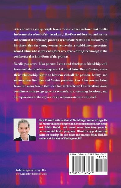 After he saves a young couple from a vicious attack in Rome that results in the murder of one of the attackers, Liko flees to Florence and arrives in the midst of organized protests by religious zealots. He discovers, to his shock, that the young woman he saved is a world-famous geneticist named Istina who is presenting her new gene-editing technology at the conference that is the focus of the protests. Needing answers, Liko pursues Istina and develops a friendship with her - until the attackers reappear. Liko and Istina flee to Venice, where their relationship begins to blossom with all the passion, beauty, and mystery that first love and Venice promises. Can Liko protect Istina from the many forces that seek her destruction? This thrilling novel combines cutting-edge genetics research, art, stunning locations, and an exploration of the ways in which religion interacts with it all.