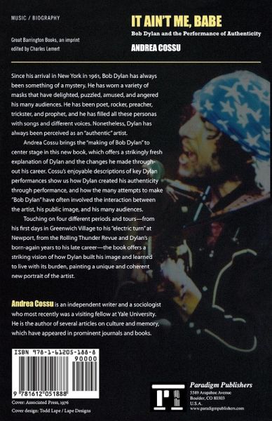 Bob Dylan has always been something of a mystery. He has worn a variety of masks that have delighted, puzzled, amused and angered his many audiences. Andrea Cossu offers a strikingly fresh explanation of Dylan and the transformations he has made throughout his career. Cossu's descriptions of key Dylan performances explain how he forged authenticity through performance, and how the various attempts to make 'Bob Dylan' have often involved the interaction between the artist, his public image and his many audiences. It Ain't Me Babe offers a striking vision of how Dylan built his image and learned to live with its burden, painting a unique and coherent new portrait of the artist.