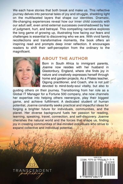 We each have stories that both break and make us. This reflective journey delves into personal tales of joy and struggle, shedding light on the multifaceted layers that shape our identities. Dramatic, life-changing experiences reveal how our inner child coexists with our adult self, even amid external successes overshadowed by fear of judgment, hurt, and betrayal. This compelling narrative explores the long game of growing up, illustrating how facing our fears and challenges is essential to discovering who we are. With vivid family recollections and transformative moments, the book offers an inspiring read and prompts deep inner reflection. It encourages readers to shift their self-perception from the ordinary to the magnificent. Born in South Africa to immigrant parents, Joanne Mitchell now resides with her husband in Glastonbury, England, where she finds joy in nature and creatively expresses herself through home and garden projects. As a Pilates teacher, Qigong practitioner, and Coach, she is not just devoted to mind-body-soul vitality, but also to guiding others on their journey. Transitioning from her role as a Global IT Manager for a Fortune 500 company, she now channels her expertise into helping others reenergize, play their biggest game, and achieve fulfillment. A dedicated student of human potential, Joanne constantly seeks practical and impactful ideas for forging a brighter future for individuals, communities, and the planet. Her diverse background fuels her passion for reading, learning, speaking, travel, connection, and self-discovery. Joanne cherishes the natural world and the forces that shape us, finding joy in creating communities of like-minded individuals who strive to expand collective and individual potential.