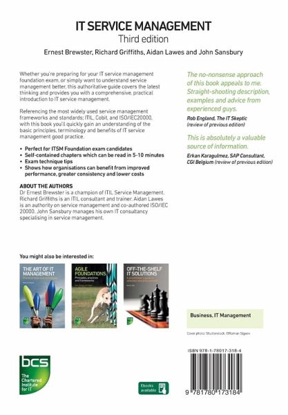 Dr Ernest Brewster is a champion of ITIL Service Management. Richard Griffiths is an ITIL trainer. Aidan Lawes is an authority on service management and co-authored ISO/IEC 20000. John Sansbury is a principal consultant and head of practice for service management.