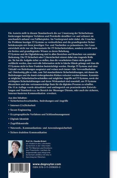Die Autorin stellt in diesem Standardwerk die zur Umsetzung der Sicherheitsanforderungen benötigten Verfahren und Protokolle detailliert vor und erläutert sie anschaulich anhand von Fallbeispielen. Im Vordergrund steht dabei, die Ursachen für Probleme heutiger IT-Systeme zu verdeutlichen und die grundlegenden Sicherheitskonzepte mit ihren jeweiligen Vor- und Nachteilen zu präsentieren. Der Leser entwickelt nicht nur ein Bewusstsein für IT-Sicherheitsrisiken, sondern erwirbt auch ein breites und grundlegendes Wissen zu deren Behebung.
