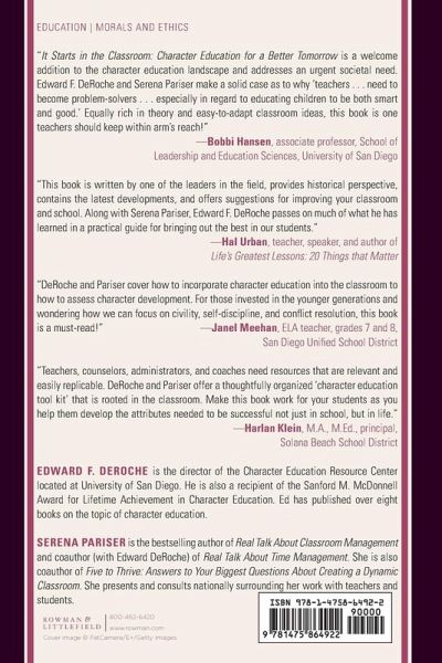 It Starts in the Classroom addresses the needs of P-12 teachers in nineteen chapters focusing on different aspects of character education. Included are a selection of pertinent references, research, and no-prep resources for teachers to use to bring life skills into the classroom that have been proven to increase student academic achievement.