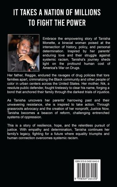 Embrace the empowering story of Tanisha Monette, a biracial woman poised at the intersection of history, policy, and personal determination. Inspired by her parents' enduring love and their struggle against systemic racism, Tanisha's journey sheds light on the profound human cost of America's War on Drugs. Her father, Reggie, endured the ravages of drug policies that tore families apart, criminalizing the Black community and other people of color in urban centers across the United States. Her mother, Nik, a resolute public defender, fought tirelessly to clear his name, forging a bond that anchored their family through the darkest trials of injustice. As Tanisha uncovers her parents' harrowing past and their unwavering resistance, she is inspired to take action. Through grassroots advocacy and the creation of her nonprofit, Justice Now, Tanisha has become a beacon of reform, challenging entrenched systems of oppression. This is a story of resilience, hope, and the relentless pursuit of justice. With empathy and determination, Tanisha continues her family's legacy, fighting for a future where equality triumphs and human connection overcomes systemic racism.