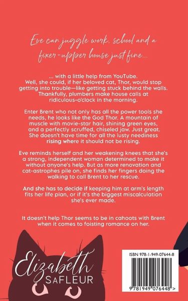 Eve can juggle work, school and a fixer-upper house just fine with a little help from YouTube. Well, she could, if her beloved cat, Thor, would stop getting into trouble-like getting stuck behind the walls. Thankfully, plumbers make house calls at ridiculous-o'clock in the morning. Enter Brent who not only has all the power tools she needs, he looks like the God Thor. A mountain of muscle with movie-star hair, shining green eyes, and a perfectly scruffed, chiseled jaw. Just great. She doesn't have time for all the lusty neediness rising where it should not be rising. Eve reminds herself and her weakening knees that she's a strong, independent woman determined to make it without anyone's help. But as more renovation and cat-astrophes pile on, she finds her fingers doing the walking to call Brent to her rescue. And she has to decide if keeping him at arm's length fits her life plan, or if it's the biggest miscalculation she's ever made. It doesn't help Thor seems to be in cahoots with Brent when it comes to foisting romance on her. An opposites attract, smoking hot, mayhem and madness, romantic comedy. Oh, and one very naughty Maine Coon cat.