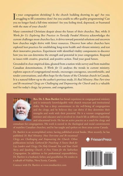 Is your congregation shrinking? Is the church building showing its age? Are you struggling to fill committee slots? Are you unable to offer quality programming? Can you no longer fund a full-time minister? Are you feeling tired, depressed, or frustrated with the state of your church? Many committed Christians despair about the future of their churches. But, while It Works for Us: Exploring Best Practices in Partially Funded Ministry acknowledges the current challenges most churches face, it drives toward potential solutions and uncovers how churches might thrive with fewer resources. Discover how other churches have explored best practices for establishing long-term health and vibrant ministry, and test their innovative practices. Experiment with identified vitality components to discover how you too can determine the strength and potential in your congregation. Respond to issues with creative, practical, and positive action. Find your good future. Grounded in clear empirical data, gleaned from a nation-wide survey and from mainline Canadian denominations, It Works for Us analyses the trends in current ministry, explores aspects of congregational morale, encourages courageous, uncomfortable, and tender conversations, and offers hope for the future of the Christian church in Canada. It is a natural follow-up to the author's previous study, It's Real Ministry: How Part-time and Bi-vocational Clergy are Challenging and Empowering the Church and is a valuable tool for today's clergy, lay persons, and congregations.