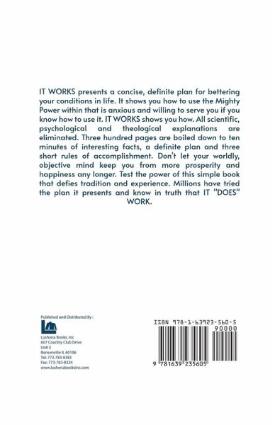 It Works is the original version of the motivational classic published by RH Jarrett. It is for those interested in changing their lives through a simple, concise, and easy plan. It shows you how to use the mighty power within you, a force willing and ready to serve you to obtain desirable possessions, Many have testified to this method and how it has helped in changing their lives. It Works truly works. About the Author Roy Herbert Jarrett, also known as RHJ was born in 1874. He was a highly successful salesman in Chicago. After much study in the metaphysical methods of success, he produced his landmark classic It Works, which has sold millions of copies worldwide. Excerpt The man who wrote this book is highly successful and widely known for his generosity and helpful spirit. He gives full credit for all that he has accomplished in mastering circumstances, accumulating wealth, and winning friends to the silent working out of the simple, powerful truth he tells of in his work. He shows you here an easy, open road to a larger, happier life.