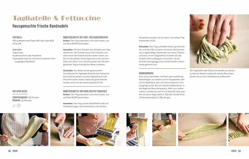 Ein schönes Detail sind die zweisprachigen Rezeptangaben – Italienisch und Deutsch –, die dem Ganzen zusätzlich Flair verleihen. Schon das Lesen der Gerichtsnamen bringt italienisches Lebensgefühl in die Küche. Wer gerne Pasta selbst macht, wird sich über die ausführlichen Anleitungen freuen – auch für gefüllte Varianten. Hier wird nicht nur erklärt, wie es geht, sondern auch warum sich der Aufwand lohnt – und das tut er.