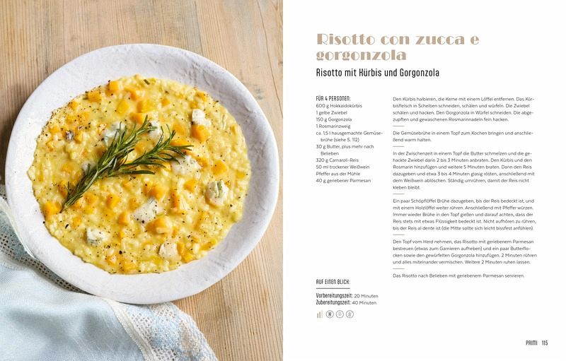 Besonders gelungen sind z. B. die "Fettuccine all' Abruzzese", ein einfaches, aber geschmacklich überzeugendes Gericht, das schnell zubereitet ist und allen schmeckt. Auch die "Gnocchetti Sardi alla contadina' sind ein Beispiel für bodenständige, regionale Küche, die mit wenigen Zutaten große Wirkung erzielt. Im Kapitel „Primi“ finden sich daneben verschiedene Risotto-Rezepte – inklusive einer detaillierten Anleitung zur perfekten Zubereitung. Schritt für Schritt wird erklärt, worauf es ankommt, damit das Risotto cremig wird und seinen Biss behält.