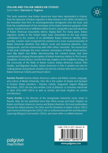This book examines how Italian Americans have been represented in cinema, from the depiction of Italian migration in New Orleans in the 1890s (Vendetta) to the transition from first- to second-generation immigrants (Ask the Dust), and from the establishment of the stereotype of the Italian American gangster (Little Caesar, Scarface) to its re-definition (Mean Streets), along with a peculiar depiction of Italian American masculinity (Marty, Raging Bull). For many years, Italian migration studies in the United States have commented on the way cinema contributed to the creation of an identifiable Italian American identity. More recently, scholars have recognized the existence of a more nuanced plurality of Italian American identities that reflects social and historical elements, class backgrounds, and the relationship with other ethnic minorities. The second part of the book challenges the most common stereotypes of Italian Americanness: food (BigNight) and Mafia, deconstructingthe criminal tropes that have contributed to shaping the perception of Italian-American mafiosi in The Funeral, Goodfellas, Donnie Brasco, and the first two chapters of the Godfather trilogy. At the crossroads of the fields of Italian Culture, Italian American Culture, Film Studies, and Migration Studies, Italian Americans in Film is written not only for undergraduate and graduate students but also for scholars who teach courses on Italian American Cinema and Visual Culture.