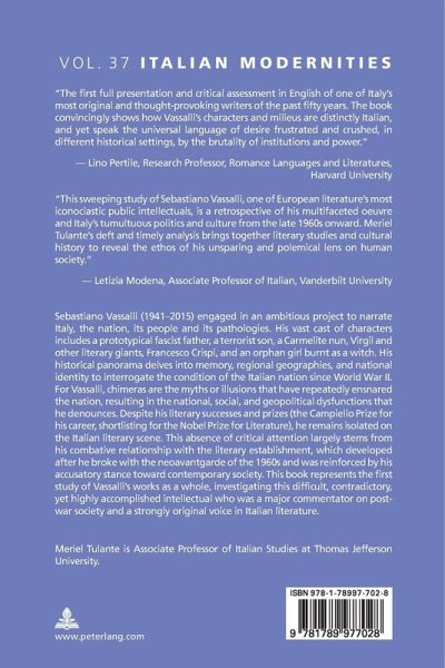 «This sweeping study of Sebastiano Vassalli, one of European literature's most iconoclastic public intellectuals, is a retrospective of his multifaceted oeuvre and Italy's tumultuous politics and culture from the late 1960s onward. Meriel Tulante's deft and timely analysis brings together literary studies and cultural history to reveal the ethos of his unsparing and polemical lens on human society.» (Letizia Modena, Associate Professor of Italian, Vanderbilt University)