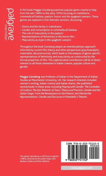 Maggie Günsberg examines popular genre cinema in Italy during the 1950s and 1960s, focussing on melodrama, commedia all'italiana , peplum, horror and the spaghetti western. These genres are explored from a gender standpoint which takes into account the historical and socio-economic context of cinematic production and consumption. An interdisciplinary feminist approach informed by current film theory and other perspectives (psychoanalytic, materialist, deconstructive), leads to the analysis of genre-specific representations of femininity and masculinity as constructed by the formal properties of film.