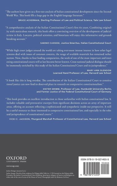 * Acknowledgments * Preface * PART I: THE CONSTITUTIONAL COURT * CHAPTER 1: THE HISTORICAL DEVELOPMENT OF ITALIAN CONSTITUTIONAL ADJUDICATION * 1. Constitutional justice prior to 1948 * 2. American-style constitutional review during the post-war transition * 3. A complex conception: Designing the Constitutional Court * 4. A long gestation: The activation of the Court * 5. The birth of a new system of constitutional adjudication * 6. Taking a deep breath: The Court's relationship to the body politic * 7. The "eras" of the Constitutional Court * 8. The present and future of the Court: constitutional justice in global context * CHAPTER 2: The Constitutional Court: rules and model * 1. The system of constitutional justice designed by the Constituent Assembly * 2. Composition * 3. Jurisdiction * 4. The system of judicial review * 5. Acts that are subject to judicial review * 6. The Italian model of judicial review: "Cooperative" and "Networked" * CHAPTER 3: FORMS AND METHODS OF JUDICIAL REASONING * 1. A concurrent plurality of methods of interpretation * 2. Reasonabless, proportionality and balancing of values * 3. The use of transnational law and comparative method * 4. The decisions of the constitutional court and their effects * PART II: CONSTITUTIONAL JURISPRUDENCE * CHAPTER 4: KEY RIGHTS AND FREEDOMS * 1. The rights and duties of citizens in the Constitution * 2. The fundamental principles of inviolability and equality * 3. Personal liberty * 4. Freedom of religion * 5. Life, reproduction, health * 6. Family * 7. Social rights * 8. Citizens and migrants * CHAPTER 5: POWERS AND CONFLICTS * 1. Relations of powers and the unique role of the Judiciary * 2. Executive vs. President of the Republic * 3. Executive vs. Parliament * 4. Judiciary vs. Parliament * 5. Judiciary vs. President of the Republic * CHAPTER 6: REGIONALISM * 1. Not "federal" but "regional" * 2. The 2001 constitutional reform of the regional system * 3. Statutory autonomy * 4. Legislative autonomy * 5. Administrative Autonomy: The principle of subsidarity * 6. Financial Autonomy * CHAPTER 7: NATIONAL CONSTITUTIONAL ADJUDICATION IN THE EUROPEAN SPACE * 1. The European Clauses of the Italian Constitution * 2. The Constitutional Court and the European Union * 3. The Constitutional Court and the European Convention on Human Rights * Appendix I: The Constitution of the Republic of Italy * Appendix II: Justices 1955 to present * Appendix III: Basic Statistics on the Constitutional Court * Table of Cases * Index