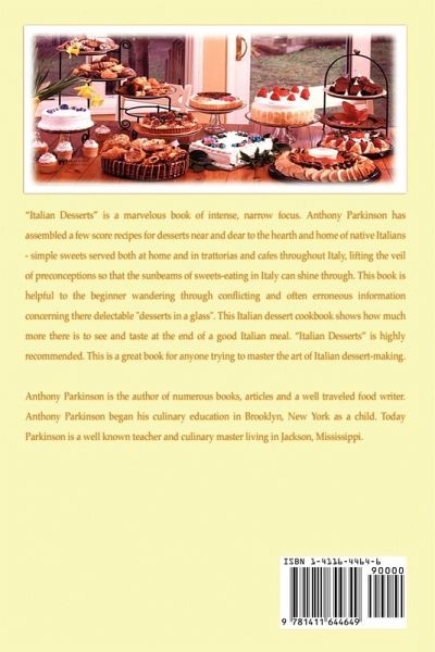 This book is helpful to the beginner wandering through conflicting and often erroneous information concerning there delectable desserts in a glass. This Italian dessert cookbook shows how much more there is to see and taste at the end of a good Italian meal. "Italian Desserts" is highly recommended. This is a great book for anyone trying to master the art of Italian dessert-making.