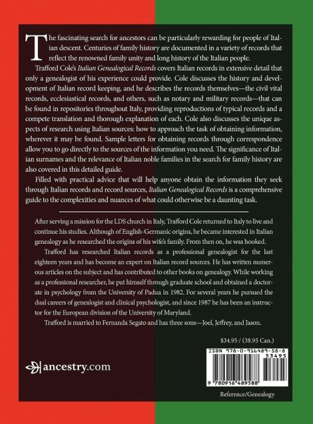 Filled with practical advice that will help anyone obtain the information they seek through Italian records, Italian Genealogical Records is a comprehensive guide to the complexities and nuances of what could otherwise be a daunting task. In this book, the author discusses the history and development of Italian record keeping, providing reproductions of typical records and a complete translation and thorough explanation of each. Among the many other topics covered in this book are the significance of Italian surnames and the relevance of Italian noble families in the search for Italian ancestors.
