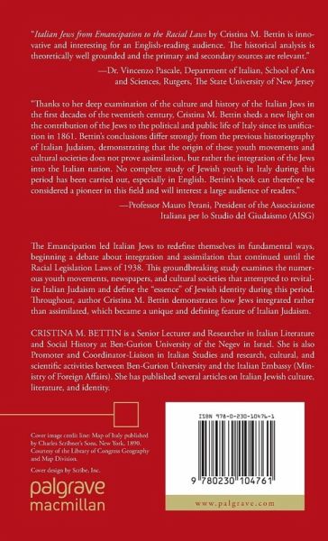 "Thanks to her deep examination of the culture and history of the Italian Jews in the first decades of the twentieth century, Cristina M. Bettin sheds a new light on the contribution of the Jews to the political and public life of Italy since its unification in 1861. Bettin's conclusions differ strongly from the previous historiography of Italian Judaism, demonstrating that the origin of these youth movements and cultural societies does not prove assimilation, but rather the integration of the Jews into the Italian nation. No complete study of Jewish youth in Italy during this period has been carried out, especially in English. Bettin's book can therefore be considered a pioneer in this field and will interest a large audience of readers." - Professor Mauro Perani, President of the Associazione Italiana per lo Studio del Giudaismo (AISG)