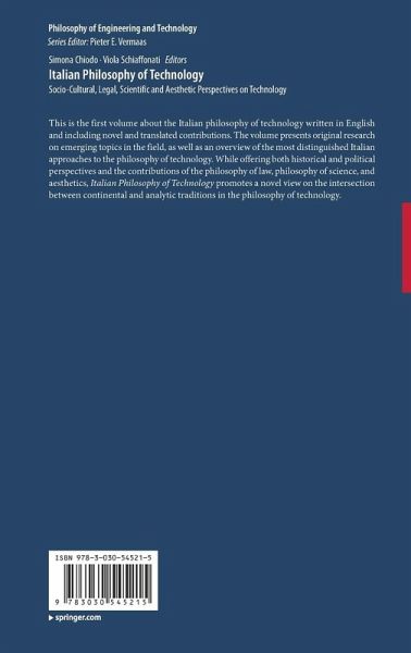 This is the first volume about the Italian philosophy of technology written in English and including novel and translated contributions. The volume presents original research on emerging topics in the field, as well as an overview of the most distinguished Italian approaches to the philosophy of technology. While offering both historical and political perspectives and the contributions of the philosophy of law, philosophy of science, and aesthetics, Italian Philosophy of Technology promotes a novel view on the intersection between continental and analytic traditions in the philosophy of technology.
