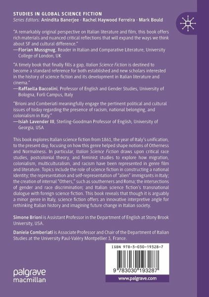 "Brioni and Comberiati's text is of great interest to both the scholar and the general reader who has more than a passing interest in Italian history and culture, postcolonial studies, and the effective use of science fiction to explore and uncover the important social and political issues to yield insights. ... The book itself is well-grounded in postcolonial theory and by the end readers have seen, as promised ... and are well-equipped to apply what was learned to other subjects." (Sean Memolo, SFRA Review, Vol. 51 (3), 2021)