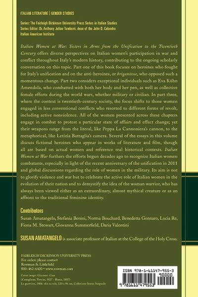 Introduction: Italy's Sisters in Arms Susan Amatangelo Part I: The Unification of Italy 1One in a Mille: Countess Martini Della Torre Benedetta Gennaro 2Peppa La Cannoniera: Citizenship in Action Giovanna Summerfield 3"Sono briganta, io, non donna di brigante": The Female Brigand's Search for Identity Susan Amatangelo Part II: The Two World Wars 4Women at War: Eva Kühn Amendola (Magamal) - Interventionist, Futurist, Fascist Lucia Re 5"We will build a better world together":Female Partisans' Memories of Their Resistance to Fascism (1943-1945) Fiona M. Stewart 6Where Women Meet Resistance: Fenoglio's War Narratives Daria Valentini Part III: State Terrorism and the Mafia 7A Sister Without Arms: The Myth of Antigone in Liliana Cavani's The Cannibals Stefania Benini 8Fighting Cosa Nostra with the Camera's Eye: Letizia Battaglia's Evolving Icons of "Traumatic Realism" Norma Bouchard About the Editor and Contributors Index