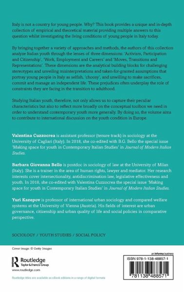 Italy is not a country for young people. Why? This book provides a unique and in-depth collection of empirical and theoretical material providing multiple answers to this question whilst investigating the living conditions of young people in Italy today.
