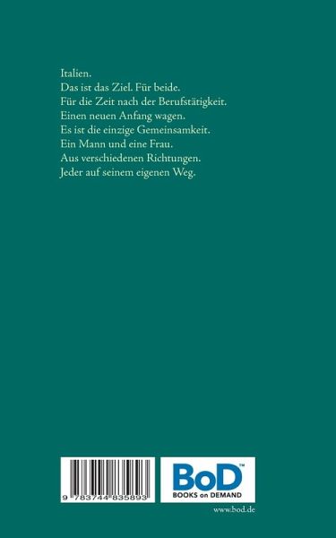 Italien. Das ist das Ziel. Für beide.Für die Zeit nach der Berufstätigkeit.Einen neuen Anfang wagen.Es ist die einzige Gemeinsamkeit.Ein Mann und eine Frau. Aus verschiedenen Richtungen.Jeder auf seinem eigenen Weg.