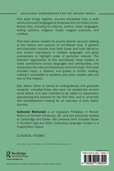 This book brings together sources translated from a wide variety of ancient languages to showcase the rich history of pre-Roman Italy, including its cultures, politics, trade, languages, writing systems, religious rituals, magical practices, and conflicts.