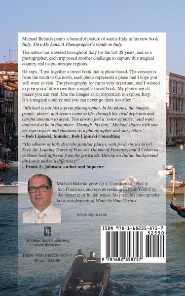 Michael Belardo paints a beautiful picture of scenic Italy in his new book Italy, Thru My Lens: A Photographer's Guide to Italy. The author has traveled throughout Italy for the last 28 years, and as a photographer, each trip posed another challenge to capture this magical country and its picturesque regions. He says, "I put together a travel book that is photo based. The concept is from the south to the north, each photo represents a place that I hope you will want to visit. The photography for me is very important, and I wanted to give you a little more than a regular travel book. My photos are all places you can visit. Use the images as an inspiration to explore Italy. It's a magical country and you can never go there too often." "Michael is not just a great photographer. In his photos, the images, people, places, and scenes come to life, through his vivid depiction and careful attention to detail. You always feel a 'sense of place,' and want and need to be in that place. Through 'his lens,' Michael shares with you his experiences and emotions as a photographer and story teller." - Bob Lipinski, founder, Bob Lipinski Consulting "His albums of Italy describe familiar places, with fresh stories to tell. Even the Leaning Tower of Pisa, the Duomo of Florence, and il Colosseo in Rome look different from the postcards. Having an Italian background obviously makes a difference!" - Frank E. Johnson, author and importer Author Bio - Michael Belardo grew up in Connecticut, lived in San Francisco, and is now residing in New York City. An importer of Italian wines, his previous photography book was Friends of Wine: In Vino Veritas.