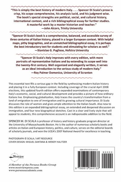 This essential book fills a serious gap in the field by synthesizing modern Italian history and placing it in a fully European context. Emphasizing globalization, Italy traces the country's transformation from a land of emigration to one of immigration and its growing cultural importance. Including coverage of the April 2008 elections, this updated edition offers expanded examinations of contemporary Italy's economic, social, and cultural development, a deepened discussion on immigration, and four new biographical sketches. Author Spencer M. Di Scala discusses the role of women, gives ample attention to the Italian South, and provides a picture of how ordinary Italians live. Cast in a clear and lively style that will appeal to readers, this comprehensive account is an indispensable addition to the field.