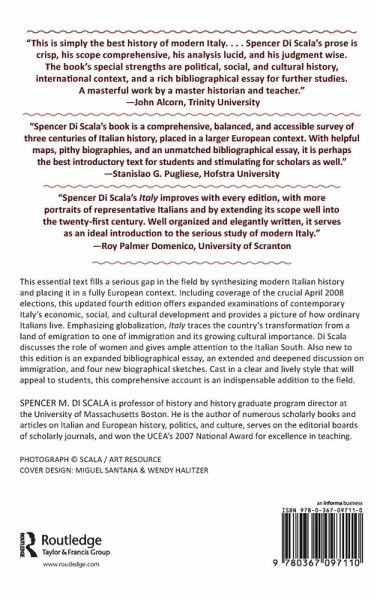 This essential book fills a serious gap in the field by synthesizing modern Italian history and placing it in a fully European context. Emphasizing globalization, Italy traces the country's transformation from a land of emigration to one of immigration and its growing cultural importance.