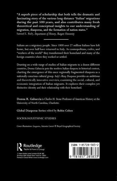 This ambitious and theoretically innovative overview examines the social, cultural and economic integration of Italian migrants. It explores their complex yet distinctive identity and their relationship with their homeland taking a comprehensive approach.