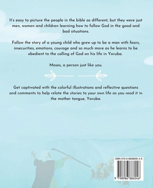 Get captivated with the colorful illustrations as you follow the story of a young child who grew up to be a man with fears, insecurities, emotions, courage and so much more as he learns to be obedient to the calling of God on his life. Story written in Yoruba. The book includes reflective questions and comments to help relate the stories to the reader's life as well as relevant Bible verses and a prayer of salvation to stir the heart of the reader to Christ. Great read for early chapter readers, middle school children, preteens and more. ¿If this book blesses you and/or your child, please leave a review. We would love to hear your story.