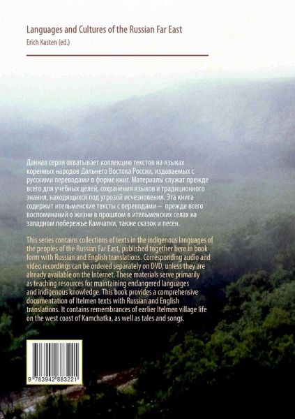This book provides a comprehensive documentation of Itelmen texts with Russian and English translations. It contains remembrances of earlier Itelmen village life on the west coast of Kamchatka, as well as tales and songs.