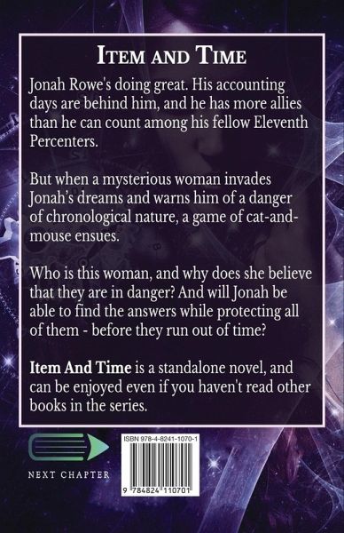 Jonah Rowe's doing great. His accounting days are behind him, and he has more allies than he can count among his fellow Eleventh Percenters. But when a mysterious woman invades Jonah's dreams and warns him of a danger of chronological nature, a game of cat-and-mouse ensues. Who is this woman, and why does she believe that they are in danger? And will Jonah be able to find the answers while protecting all of them - before they run out of time? Item And Time is a standalone novel, and can be enjoyed even if you haven't read other books in the series.