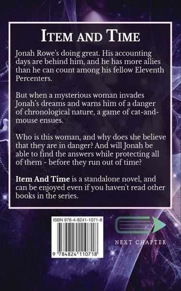Jonah Rowe's doing great. His accounting days are behind him, and he has more allies than he can count among his fellow Eleventh Percenters. But when a mysterious woman invades Jonah's dreams and warns him of a danger of chronological nature, a game of cat-and-mouse ensues. Who is this woman, and why does she believe that they are in danger? And will Jonah be able to find the answers while protecting all of them - before they run out of time? Item And Time is a standalone novel, and can be enjoyed even if you haven't read other books in the series.