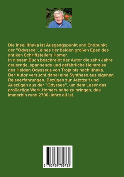 Ithaka ist Beginn und Abschluss der "Odyssee" von Homer, eines seiner beiden großen Epen neben der "llias" In diesem Buch versucht der Autor die Odyssee, also die Heimreise von Odysseus in eine Synthese aus eigener Reiseerfahrung, aus Parallelen zu unser heutigen Zeit und Auszügen aus der Odyssee zu übertragen, um dem interessierten Leser das Thema etwas näher zu bringen ohne das Original lesen zu müssen