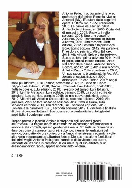 Troppo presto la piccola Virginia è strappata agli innocenti giochi dell'infanzia. La tragica morte dell'amato zio la costringe ad affacciarsi al mondo e alle correnti, spesso gelide della realtà. Smarrita, intraprende un duro percorso di conoscenza di sé, subendo, inerme, le tentazioni del mondo, combattendo ora contro, ora a fianco di se stessa, negando a volte, altre volte aggrappandosi all'antica fede in Dio trasmessale in famiglia sin dai primi vagiti. Antonio Pellegrino, narratore delle, vicende del cuore, racconta di un'anima in cammino, la cui meta, quel Dio artefice di un destino imperscrutabile appare ancora tanto lontana.