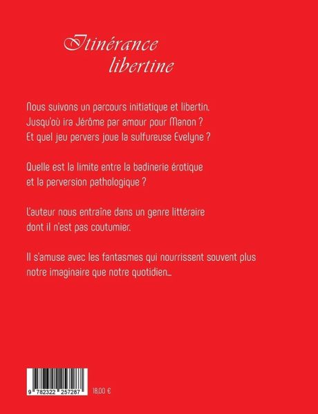 Un parcours initiatique et libertin.Jusqu'où ira Jérôme par amour pour Manon et quel jeu pervers joue la sulfureuse Evelyne ?Quelle est la limite entre badinerie érotique et la perversion pathologique ?L'auteur nous entraine dans un genre littéraire dont il n'est pas coutumier.Il s'amuse avec les fantasmes qui nourrissent souvent plus notre imaginaire que notre quotidien.