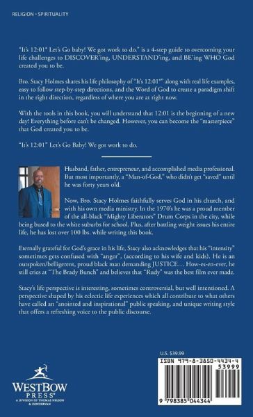 "It's 12:01® Let's Go baby! We got work to do." is a 4-step guide to overcoming your life challenges to DISCOVER'ing, UNDERSTAND'ing, and BE'ing WHO God created you to be. Bro. Stacy Holmes shares his life philosophy of "It's 12:01®" along with real life examples, easy to follow step-by-step directions, and the Word of God to create a paradigm shift in the right direction, regardless of where you are at right now. With the tools in this book, you will understand that 12:01 is the beginning of a new day! Everything before can't be changed. However, you can become the "masterpiece" that God created you to be. "It's 12:01" Let's Go Baby! We got work to do.