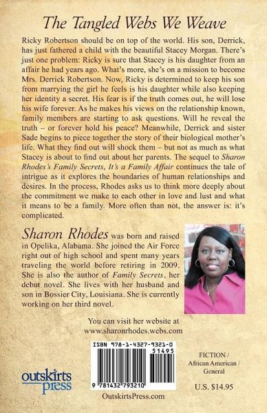 It's a Family Affair is a sequel to Sharon Rhodes' debut novel, Family Secrets. Ricky Robertson is sure Stacey Morgan is his daughter from an affair he had years ago. But he can't reveal Stacey's identity because of the fear of losing his wife. To make matters worse, Ricky's son fathered a child with Stacey and now she is on a mission to become Mrs. Derrick Robertson. Ricky tries to convince his son that Stacey is setting a trap but he isn't sure his point of view is coming across to Derrick. The family knows Ricky doesn't want this union to join together but they don't know why. Now it's a matter of whether Ricky will reveal the truth or whether he will forever hold his peace. But Ricky isn't the only one trying to conceal the past. Derrick and Sade are shocked to learn the secret behind their biological mother and father's relationship. They learn terrible and disturbing information about their father's past that makes them question whether or not they would like to get to know him. Oh what a tangled web this family has weaved.