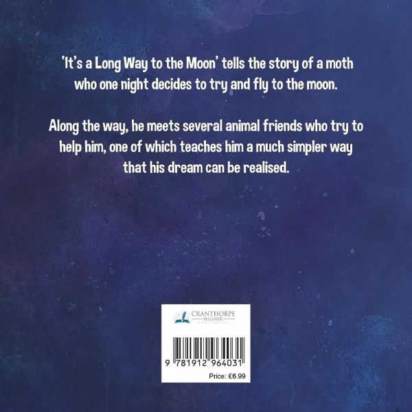 `It's a Long Way to the Moon' tells the story of a moth who one night decides to try and fly to the moon. Along the way, he meets several animal friends who try to help him, one of which teaches him a much simpler way that his dream can be realised.