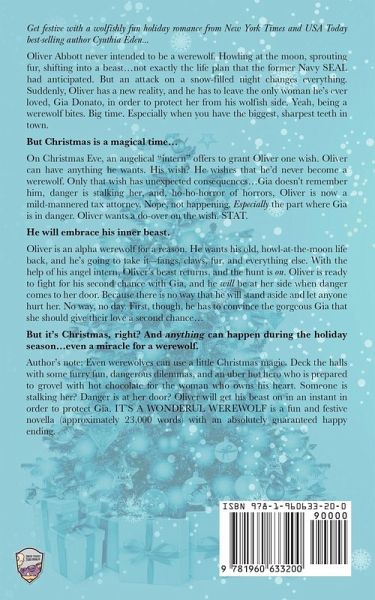 Get festive with a wolfishly fun holiday romance from New York Times and USA Today best-selling author Cynthia Eden... Oliver Abbott never intended to be a werewolf. Howling at the moon, sprouting fur, shifting into a beast...not exactly the life plan that the former Navy SEAL had anticipated. But an attack on a snow-filled night changes everything. Suddenly, Oliver has a new reality, and he has to leave the only woman he's ever loved, Gia Donato, in order to protect her from his wolfish side. Yeah, being a werewolf bites. Big time. Especially when you have the biggest, sharpest teeth in town. But Christmas is a magical time... On Christmas Eve, an angelical "intern" offers to grant Oliver one wish. Oliver can have anything he wants. His wish? He wishes that he'd never become a werewolf. Only that wish has unexpected consequences...Gia doesn't remember him, danger is stalking her, and, ho-ho-horror of horrors, Oliver is now a mild-mannered tax attorney. Nope, not happening. Especially the part where Gia is in danger. Oliver wants a do-over on the wish. STAT. He will embrace his inner beast. Oliver is an alpha werewolf for a reason. He wants his old, howl-at-the-moon life back, and he's going to take it-fangs, claws, fur, and everything else. With the help of his angel intern, Oliver's beast returns, and the hunt is on. Oliver is ready to fight for his second chance with Gia, and he will be at her side when danger comes to her door. Because there is no way that he will stand aside and let anyone hurt her. No way, no day. First, though, he has to convince the gorgeous Gia that she should give their love a second chance... But it's Christmas, right? And anything can happen during the holiday season...even a miracle for a werewolf. Author's note: Even werewolves can use a little Christmas magic. Deck the halls with some furry fun, dangerous dilemmas, and an uber hot hero who is prepared to grovel with hot chocolate for the woman who owns his heart. Someone is stalking her? Danger is at her door? Oliver will get his beast on in an instant in order to protect Gia. IT'S A WONDERUL WEREWOLF is a fun and festive novella (approximately 23,000 words) with an absolutely guaranteed happy ending.