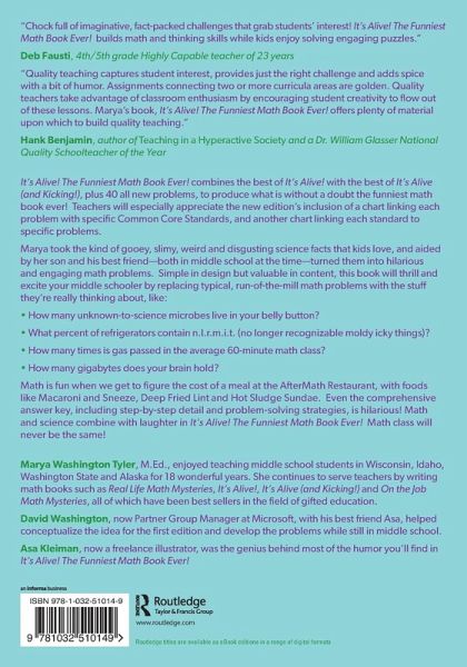 Marya Washington Tyler, M.Ed., enjoyed teaching middle school students in Wisconsin, Idaho, Washington State and Alaska for 18 wonderful years. She continues to serve teachers by writing math books such as Real Life Math Mysteries, It's Alive!, It's Alive (and Kicking!) and On the Job Math Mysteries, all of which have been best sellers in the field of gifted education. David Washington, now Partner Group Manager at Microsoft, with his best friend Asa, helped conceptualize the idea for the first edition and develop the problems while still in middle school. Asa Kleiman, now a freelance illustrator, was the genius behind most of the humor you'll find in It's Alive! The Funniest Math Book Ever!